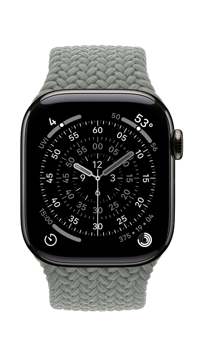 Second, my personal favourite, the Apple Watch titanium model, this watch face is much more my vibe, functional but still sleek but not too flashy, just take a look at this beauty: